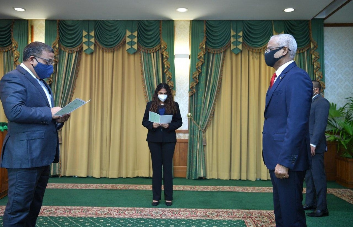ރައީސް އޮފީހުގައި ބޭއްވި ރަސްމިއްޔާތެއްގައި ރައީސް އިބްރާހިމް މުހައްމަދު ސޯލިހުގެ ކުރިފުޅުމަތީގައި އަސްލަމް ވަނީ މަގާމުގެ ހުވާކުރައްވައިފަ އެވެ. އޭނާ އަށް ހުވާލައި ދެއްވީ ސުޕްރީމް ކޯޓުގެ ފަނޑިޔާރު ޑރ. އަޒްމިރާދާ ޒާހިރު އެވެ.