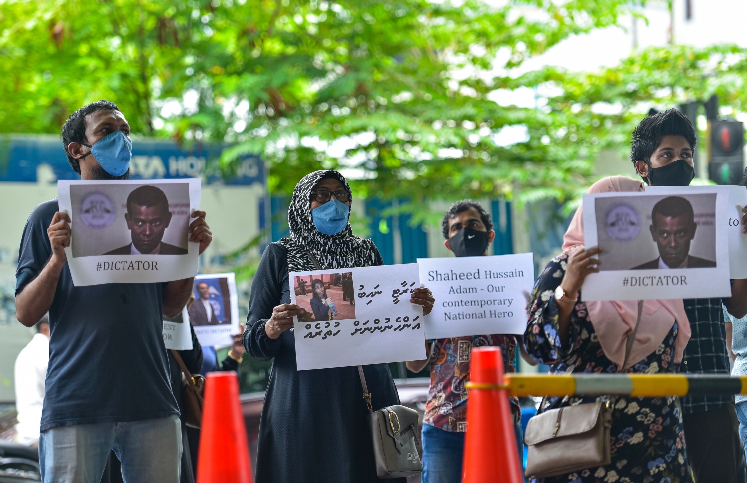 ސޯސަންމަގު، މަޖީދިއްޔާ ކަންމައްޗަށް ތިރީހަކަށް މީހުން އެއްވެ މުޒާހަރާ ކުރިއިރު އިސްކޮށް ހުރީ ޕީޕީއެމްގެ ކައުންސިލް މެންބަރު އަހްމަދު ނަރީޝް އެވެ. އެ މީހުން ދުރުދުރުގައި ތިބެ، ފުލުހުންގެ ދިފާއުގައި ލިޔެފައިވާ ބޯޑްތަކެއް ހިފައިގެން އަޑު އުފުލި އެވެ. ބައެއް ބޯޑުތަކުގައި މަޖިލީހުގެ ރައީސް، ރައީސް މުހައްމަދު ނަޝީދާއި މަޖިލީހުގެ ނައިބު ރައީސް އީވާ އަބްދުﷲ އާ ދެކޮޅަށް ޝުއޫރުތައް ލިޔެފައިވެ އެވެ.