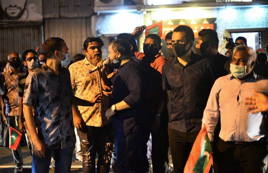 އިދިކޮޅު ޕީޕީއެމާއި ޕީއެންސީ ކޯލިޝަނުގެ މުޒާހަރާ ފެށީ މަޖިދީމަގާއި ޗާންދަނީމަގު ގުޅުނު ސަރަހައްދުގަ އެވެ. އެ ޕާޓީގެ ލީޑަޝިޕްގެ ބައެއް ބޭފުޅުން ބައިވެރިވެވަޑައިގެން އަޑުއުފުލި މުޒާހަރާގައި ދެ މީހަކު ހައްޔަރުކުރި އެވެ. އަދި މުޒާހަރާ އަށް ހުރަސްއަޅަން ފުލުހުން ދެ ފަހަރެއްގެ މަތިން މަސައްކަތް ކުރި ނަމަވެސް ހުއްޓާނުލައި ކުރިއަށް ގެންދިޔަ އެވެ.