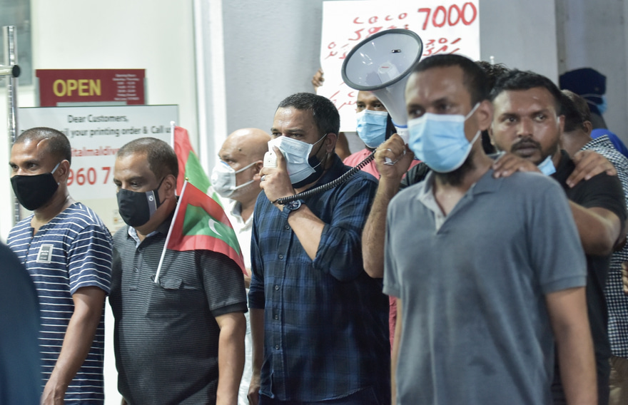 "އިހުތިޖާޖު ފެށުމުގެ ކުރިން މިރޭ 20:22 ގައި އަޅުގަނޑު ޗާނދަނީ މަގު ދުވާރުމަތީ ހުއްޓާ ފުލުހަކު އައިސް ވިދާޅުވި ސާރމެން މިރޭ ނިންމާފައި އޮތީ ކުޅުތަޅަން ކަމަށް މައުލޫމާތު ލިބެޔޭ،" ޝިޔާމް ވިދާޅުވި އެވެ.