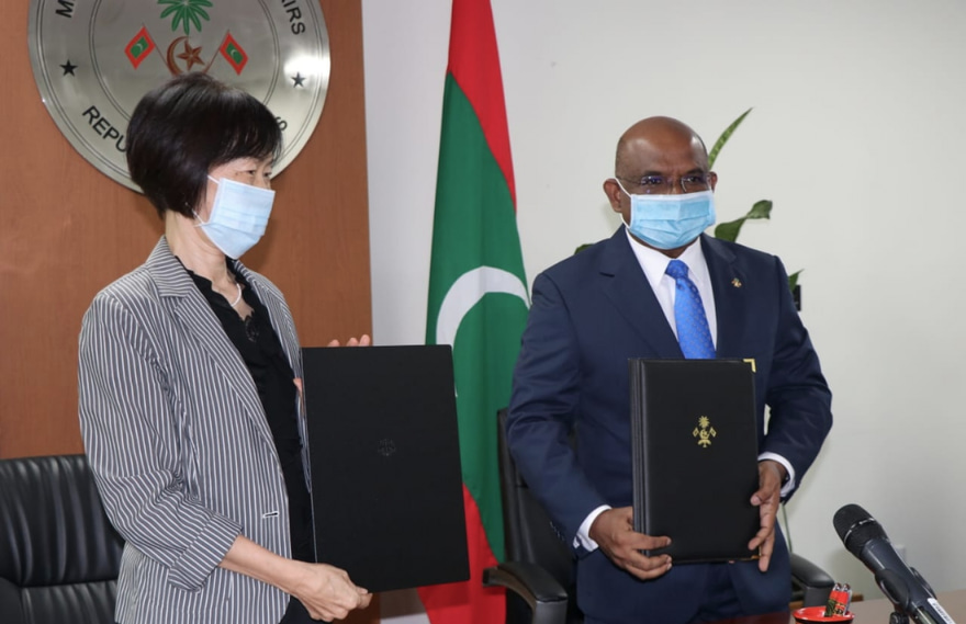ފޮރިން މިނިސްޓްރީގައި ބޭއްވި ރަސްމިއްޔާތެއްގައި، ރާއްޖޭގެ ފަރާތުން އެއްބަސްވުމުގައި ސޮއި ކުރެއްވީ ފޮރިން މިނިސްޓަރު އަބްދުﷲ ޝާހިދެވެ. ޖަޕާނުގެ ފަރާތުން ސޮއިކުރެއްވީ ރާއްޖޭގައި ހުންނަވާ އެ ގައުމުގެ ސަފީރު ކެއިކޯ ޔަނާއީ އެވެ.