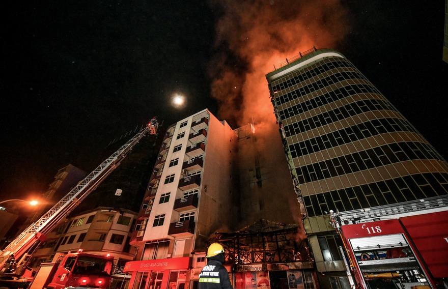 ބޮޑުތަކުރުފާނު މަގުން އާޓިފިޝާލް ބީޗް ކަރީގައި ހުންނަ 10 ބުރީގެ އެ އިމާރާތުގެ ޕެންޓު ހައުސް އާއި އެހެން ފްލޯތަކުގެ ތެރެއަށް އަލިފާންގަނޑު ވަނީ، ޖެހިގެން ހުރި ޓިއޮލޯ ކެފޭގައި ރޯވެގެންނެވެ. ގަދަގޭ މުހައްމަދުފުޅު ބިލްޑިންގަށް އަލިފާން ފޯރީ، އެ އިމާރާތުގެ ބޭރުގައި ޖަހާފައި ހުރި ކްލެޑިންގައި، ކެފޭގައި ރޯވި އަލިފާން ހިފުމުން ކަމަށް މަންޒަރު ދުށް މީހުން ބުނެ އެވެ.