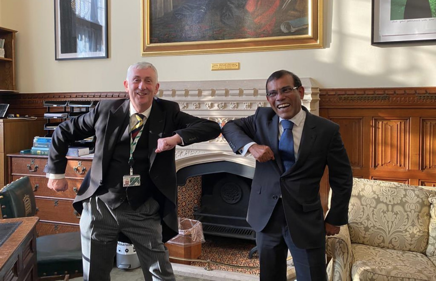 އިނގިރޭސިވިލާތަށް ކުރެއްވި ދަތުރުފުޅުގައި އެ ގައުމުގެ ޕާލިމެންޓްގެ ތިރިގެ، ހައުސް އޮފް ކޮމަންސްގެ ސްޕީކަރު ލިންޑްސޭ ހޮއިލްއާ ނަޝީދު ބައްދަލުކުރެއްވި އެވެ. އަދި ޔޫރަޕިއަން ޔޫނިއަން (އީޔޫ) އިން ބޭއްވި އީޔޫ- ޑިމޮކްރަސީ ވީކްގެ ހައިލެވެލް ސެޝަންގައި އެ މަނިކުފާނު ވާޗުއަލްކޮށް ބައިވެރިވެވަޑައިގެންނެވި އެވެ.