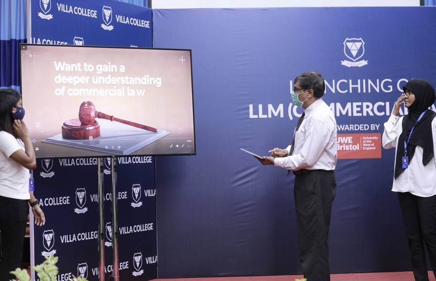 އިނގިރޭސި ވިލާތުގެ ޔުނިވާސިޓީ އޮފް ދި ވެސްޓް އޮފް އިންގްލަންޑް (ޔޫވީ) ގެ ކޮމާޝަލް ލޯ (އެލްއެލްއެމް) ގެ މާސްޓާސް ޑިގްރީއެއް ވިލާ ކޮލެޖުން މިއަދު ތައާރަފު ކޮށްފި އެވެ.