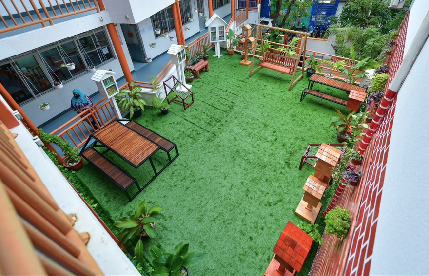ހުރިހާ އުމުރަކާ ވެސް ގުޅޭ ތަފާތު އެތައް ވައްތަރެއްގެ ފޮތް ހިމެނޭ ލައިބްރަރީ އެއްފަހަރާ 32 ކުދިންނަށް ބޭނުންކުރެވޭނެ އެވެ. ފޮތްތައް ބަހައްޓާފައި ވަނީ ކަބަޑުގަ އެވެ. ދަރިވަރުންނަށް އިށީންނަން ޖޯއްޔާއި ބެންޗު ބަހައްޓާފައި ވެސް ހުއްޓެވެ.