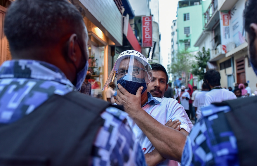 މާލޭގައި ބޭއްވި މުޒާހަރާ ކޮންޓްރޯލް ކުރަން ގިނަ އަދަދެއްގެ ފުލުހުން ހަރަކާތްތެރިވި އެވެ. މުޒާހަރާ ރޫޅާލުމަށް ފުލުހުން ވަނީ ޕެޕާ ސްޕްރޭ ޖަހައި ބާރުގެ ބޭނުންކޮށްފަ އެވެ. އެކަމުގެ ތެރޭގައި އިދިކޮޅު ކޯލިޝަންގެ ބައެއް މެންބަރުންނާއި ބައެއް ނޫސްވެރިންނަށް ވެސް އަނިޔާވި އެވެ. އަދި މުޒާހަރާގެ ތެރެއިން ބައެއް މީހުން ހައްޔަރު ވެސް ކުރި އެވެ.