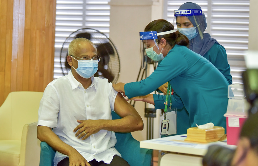 ރާއްޖެ ގެނެސްފައިވާ އިންޑިއާގެ ސީރަމް އިންސްޓިޓިއުޓްގައި ހަދާ އޮކްސްފޯޑް ވެކްސިން، ރައްކާތެރިކަމުގެ ޔަގީންކަން ރައްޔިތުންނަށް ދެއްވުމުގެ ގޮތުން ރައީސް އާއި އަނބިކަނބަލުން ފަޒްނާ އަހްމަދު މިއަދު ވަނީ ކޮވިޝީލްޑްގެ ފުރަތަމަ ޑޯޒް ޖައްސަވައިފަ އެވެ. މީގެ އިތުރުން ރައްޔިތުންގެ މަޖިލީހުގެ ރައީސް އަދި ކުރީގެ ރައީސް މުހައްމަދު ނަޝީދާއި އުއްތަމަފަނޑިޔާރު މުއުތަސިމް އަދުނާނާއި ބައެއް ވަޒީރުންނާއި ސިއްހީ ދާއިރާ ހިމެނޭ ގޮތުން ޖުމްލަ 34 މީހަކަށް އެތަނުގައި ވެކްސިން ޖެހި އެވެ.