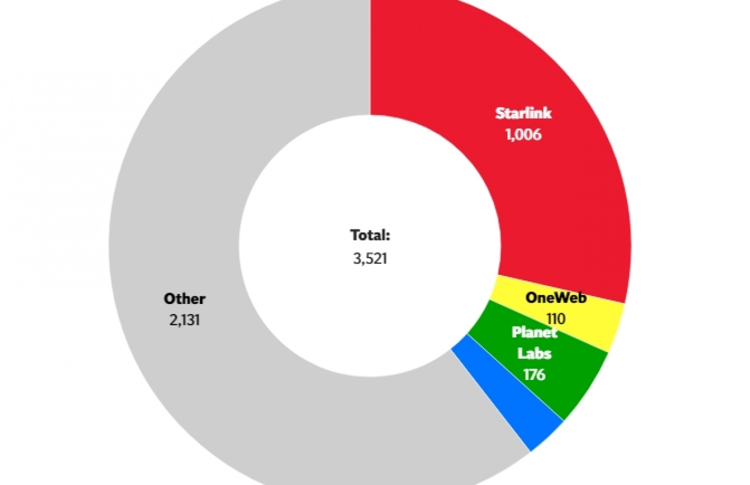 ސެޓެލައިޓްތަކާ ބެހޭ މައުލޫމާތު އެއްކުރާ ސެލެސްޓްރެކް އިން އާންމުކޮށްފައިވާ ތަފާސްހިސާބުތަކަށް ބަލާ އިރު "ސްޓާލިންކް" ސެޓެލައިޓްގެ ފައުޖުގެ އަދަދު މި ވަގުތު 1،006 ގައި އޮތް އިރު ދެން އެންމެ ގިނަ އަދަދަށް ހުރި އެކްޓިވް ސެޓެލައިޓަކީ ޕްލެނެޓް ލެބްސް އަށް ނިސްބަތްވާ 176 ސެޓެލައިޓެވެ. ވަންވެބްގެ އެކްޓިވް ސެޓެލައިޓްގެ އަދަދަކީ 110 އެވެ. އަދި އެހެން ކުންފުނިތަަކުގެ ސެޓެލައިޓްތަކުގެ އަދަދު 2،131 އަށް އަރާއިރު ޖުމްލަ އެކްޓިވް ސެޓެލައިޓްގެ އަދަދަކީ މިހާރު 3،521 އެވެ.