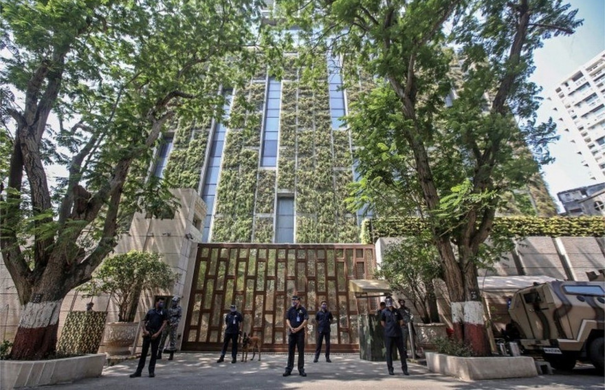 މުކޭޝް އަމްބާނީގެ ގެ، މަޝްހޫރު ނަމުން ނަމަ އިންޓިލިއާ، ކައިރީގައި އޮތް ކާރެއްގައި ގޮވާ އެއްޗެހި ހުރިކަން އެނގި، ފުލުހުންނަށް އެންގީ ފެބްރުއަރީ 25ގެ ހެނދުނެވެ.