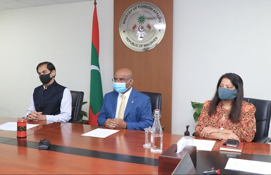 މަޝްރޫއުގެ ނިމުން އިފްތިތާހުކުރަން ވާޗުއަލްކޮށް މިއަދު ބޭއްވި ރަސްމިއްޔާތުގައި ފޮރިން މިނިސްޓަރު އަބްދުﷲ ޝާހިދާއި އިންޑިއާ އިން ރާއްޖެއަށް ކަނޑައަޅާފައިވާ ސަފީރު ސަންޖޭ ސުދީރާއި ޖެންޑާ މިނިސްޓްރީގެ އިސްވެރިން ބައިވެރިވެ ވަޑައިގަތެވެ.