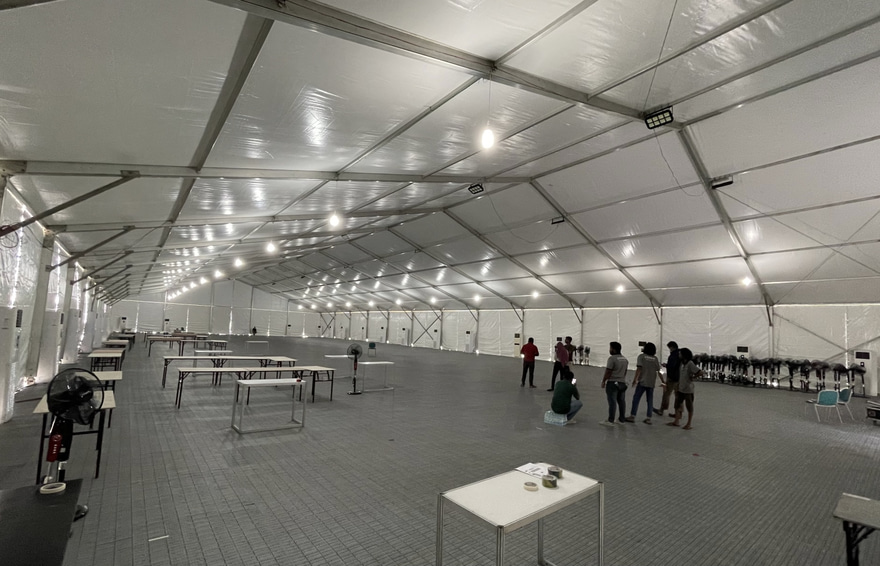 ޓެންޓް ހަދާ ކުންފުނިން ބުނީ، ޓެންޓުތަކުގެ މަސައްކަތް ހުރީ ނިމިފައިވާ ކަމަަށާއި އެ ތަކެއްޗާ ހަވާލުވާން އީސީއާ ގުޅައިފައިވާ ކަމަށެވެ.