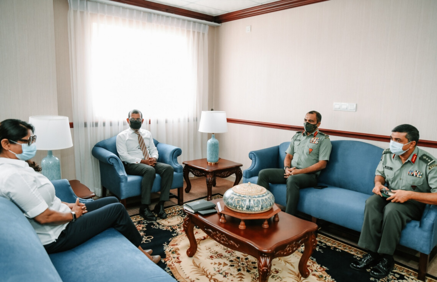 މިދިޔަ މާޗް މަހުގެ ތެރޭގައި އިންޓެލިޖަންސަށް ލިބުނު ރިޕޯޓަކާ އެކު، އެ މަނިކުފާނުގެ ސެކިއުރިޓީ ލެވެލް ވަނީ ދެ ދަރަޖަ މައްޗަށް، ނުވަތަ ކްރިޓިކަލް ލެވެލް އަށް ޖައްސައިފަ އެވެ. އަދި އެ މަނިކުފާނުގެ ސަލާމަތީ ކަންތައްތަކާ މެދު އިތުރު މަޝްވަރާއަކަށް ސިފައިންގެ އެންމެ އިސް ތިން ބޭފުޅުން ރައްޔިތުންގެ މަޖިލީހަށް، ނަޝީދާ ބައްދަލުކުރައްވަން ވަޑައިގަތެވެ. މިދިޔަ މާޗް 11 ވަނަ ދުވަހު އޮތް މި ބައްދަލުވުމުގައި ބައިވެރިވެ ވަޑައިގަތީ މިނިސްޓަރާއި ޗީފް އޮފް ޑިފެންސް ފޯސްގެ އިތުރުން ވައިސް ޗީފް އޮފް ޑިފެންސް ފޯސް އަދި އިންޓެލިޖެންސްގެ ހެޑް ބްރިގޭޑިއާ ޖެނެރަލް އަބްދުއްރަހީމް އަބްދުއްލަތީފެވެ.