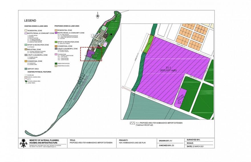"ނަމަވެސް ދަންނަވަމެވެ. އެއާޕޯޓު އެކްސްޓެންޝަނަށް ޒޯން ކޮށްފައިވާ ބިމުގެ ތެރެއަށް ރަށުގެ ޕިކްނިކް ސަރަހައްދު ގޮތުގައި ފާހަގަކުރެވިފައިވާ ބިން ހިމެނޭކަން ފާހަގަކުރެވިފައިވާތީ މި ބިން ރަށުގެ އެހެން ސަރަހައްދަކުން ފާހަގަކުރުމަށް ފަހު ރަށުގެ ލޭންޑު ޔޫސް ޕްލޭނުގައި ހިމެނުމަށް ފަހު މި މިނިސްޓްރީއަށް ހުށަހެޅުމަށް ދަންނަވަމެވެ،" އެސިސްޓެންޓް ޑިރެކްޓަރު ނިހާޒާ އަނީސް ސޮއިކުރައްވައި ފޮނުއްވި ސިޓީގައި ވެ އެވެ.