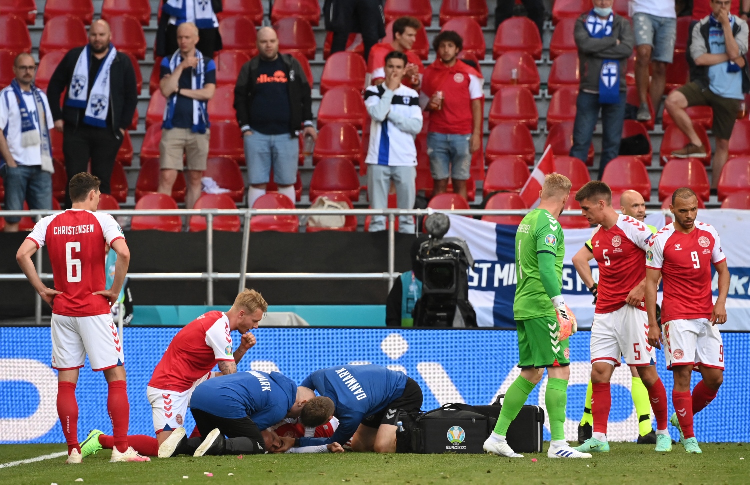 ކޯޕެންހޭގަން (ޖޫން 13) - ޔޫރޯ 2020 ފުޓުބޯޅަ މުބާރާތުގައި ފިންލޭންޑާ ދެކޮޅަށް ގްރޫޕް ސްޓޭޖުގައި ރޭ ކުޅުނު މެޗުގެ ފުރަތަމަ ހާފު ނިމެން އުޅެނިކޮށް ކްރިސްޓިއަން އެރިކްސަން ކުއްލިއަކަށް ދަނޑު މައްޗަށް ވެއްޓުމުން އޭނާ އަށް ފަރުވާ ދިން ޓީމް ޑޮކްޓަރު އެ ވަގުތުކޮޅު ސިފަކޮށްދީފި އެވެ.