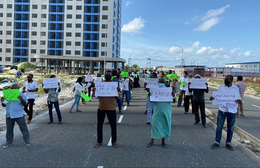 ހިޔާ މަޝްރޫއުގެ ދަށުން އަޅާފައިވާ ފްލެޓްތަކުގެ ކުލި ކުޑަކޮށްދޭން ގޮވާލައި އެ ފްލެޓްތަކުގެ ކައިރީގައި މިއަދު ހަވީރު މުޒާހަރާކޮށްފި އެވެ.