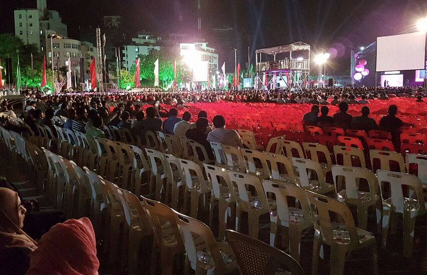 ސިވިލް ސާވިސް އާއި ސަރުކާރުގެ ކުންފުނިތަކުގެ މުވައްޒަފުންނަށް ހާއްސަކޮށްގެން މިރޭ 9:00 އިން ދަންވަރު 12:00 އަށް ބޭއްވި މި ޖަލްސާ ފެށިއިރު، ހުރިހާ ގޮނޑިއެއްހެން އޮތީ ފުރިފަ އެވެ. ނަމަވެސް، ޖަލްސާގެ ވަގުތު ދިގުދެމިގެން ދިޔަ ވަރަކަށް ޖަލްސާ ދޫކޮށް ދާ މީހުން ގިނަވެ ޖަލްސާ މެދަކާ ހިސާބަށް ދިޔައިރު ފަހަތު ގޮނޑިބަރިތައް ގާތްގަނޑަކަށް އެއްކޮށް ހުސްވި އެވެ. ޖަލްސާ ފެށުމާ އެކު އެތަނުން ނުކުތް މީހުން ވެސް ފެނުނެވެ.
