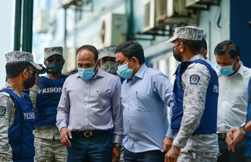 ކްރިމިނަލް ކޯޓުގައި ކުރީގެ ރައީސް އަބްދުﷲ ޔާމީންގެ މައްޗަށް ހުކުމް ކުރި ބެންޗުގެ ފަނޑިޔާރުންތަކެއްގެ އޯޑިއޯތަކެއް ލީކުވުމާ ގުޅިގެން، އެ މަނިކުފާނަށް ކޮށްފައިވާ ފަސް އަހަރުގެ ޖަލު ހުކުމް ބާތިލުކޮށް، ޔާމީން އެއްވެސް ޝަރުތަކާ ނުލައި މިނިވަން ކުރަން ގޮވާލައި އިދިކޮޅު ޕީޕީއެމް/ޕީއެންސީން މިރޭ ގަރާރެއް ފާސްކޮށްފި އެވެ.