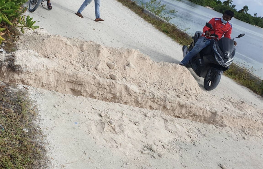 މަޑަވެލީ ކައުންސިލްގެ ރައީސް ފިޔާޒް ހަސަން "މިހާރު" އަށް ވިދާޅުވީ އެ ކޯޒްވޭގެ ހޯޑެއްދޫ އާއި ހާދޫއާ ދެމެދުގައި އޮންނަ ބައިން ބޮޑު ތަނެއް ކަނޑާލާފައިވާކަން އެނގުނީ މިއަދު ހެނދުނު ކަމަށެވެ. އެކަން ކޮށްފައިވާ ކަމަށް ބެލެވެނީ ރޭ ދަންވަރު ކަމަށް އޭނާ ވިދާޅުވި އެވެ.