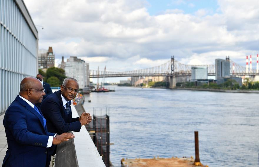 ރަސްމީ ދަތުރެއްގައި ރާއްޖެ ވަޑައިގަންނަވަން ޝާހިދަށް ރައީސް ދައުވަތު ދެއްވީ، އދ. ގެ އާންމު މަޖިލީހުގެ ރައީސް ކަމުގެ މަގާމާ ހަވާލުވެވަޑައިގަތުމަށް ފަހު ދެ ބޭފުޅުން އެކީގައި އެމެރިކާގެ ނިއު ޔޯކްގައި ބޭއްވި ބައްދަލުވުމެއްގަ އެވެ.