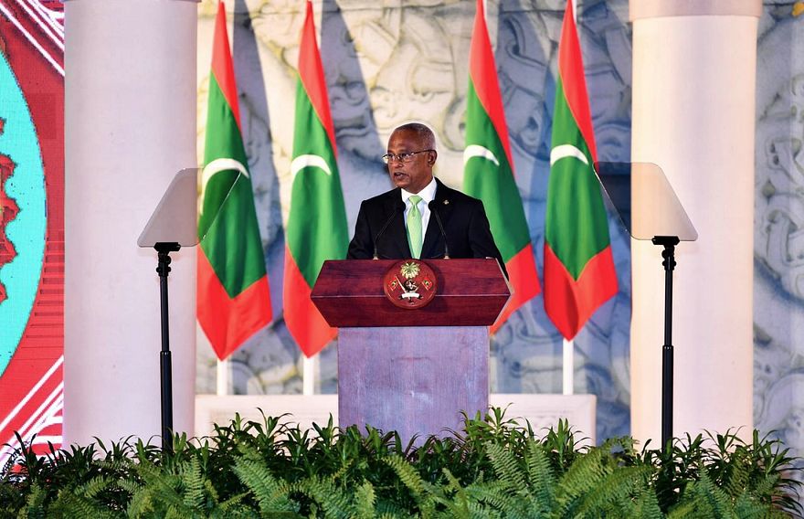 "ރާއްޖޭގެ ތާރީހު ލިޔަމުންދާއިރު އަޅުގަނޑުމެންނަށް މިއަދު ހުއްޓި މިތިބެވެނީ، ތިމާވެށީގެ ކުރިމަތީގައި ޖެހުނު މޫސުމީ ބަދަލުތަކުގެ ފުލްސްޓޮޕަކަށް. މިހާ ހިސާބުން ރާއްޖޭގެ ތާރީހު އިތުރަށް ލިޔެ ފުރިހަމަކުރާނީތޯ، ނުވަތަ އެ ފުލްސްޓޮޕާ އެކު ތިމާވެށީގެ ޝިކާރައަކަށްވެ ނިމިގެންދާން ދޫކޮށްލާނީތޯ، އެއީ މި ޖީލުގެ ދިވެހިން ޖަވާބަކާ މެދު ވިސްނަންޖެހިފައިވާ އެންމެ ވަރުގަދަ ސުވާލު،" ރައީސް ވިދާޅުވި އެވެ.