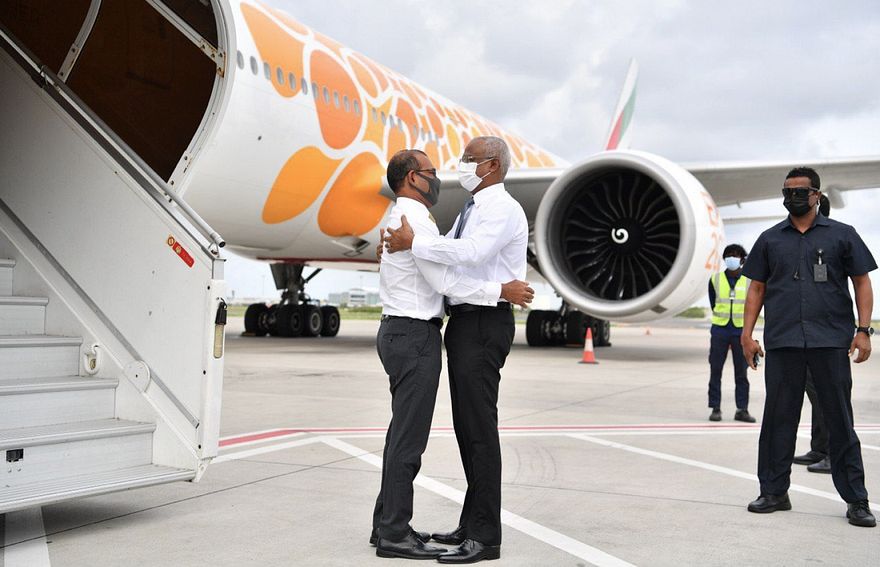 ރައްޔިތުންގެ މަޖިލީހުގެ ރައީސް މުހައްމަދު ނަޝީދަށް ދިން ޓެރަރިސްޓް ހަމަލާއަށް ފަހު ފަރުވާ އަށް ރާއްޖޭން ބޭރުގައި އުޅުއްވާތާ ހަތަރު މަސް ފަހުން މިއަދު ރާއްޖެ ވަޑައިގަތުމާ އެކު ރައީސް އިބްރާހިމް މުހައްމަދު ސޯލިހް ހޫނު މަރުހަބާއެއް ވިދާޅުވެއްޖެ އެވެ.