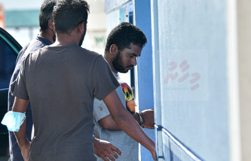 ގެ ވަށައިގެން ބޮޑު ސަރަހައްދެއް ކޯޑޯންކޮށް ބަހައްޓާފައި ފުލުހުން އޭނާ ޕޮލިސް ސްޓޭޝަނަށް ގެންދިޔައީ އެ ރަށު ގެސްޓްހައުސްއެއްގެ ކާރަކަށް އަރުވައިގެންނެވެ. ޕޮލިސް ސްޓޭޝަނަށް އޭނާ ވެއްދި އިރު ހުރީ ވެސް ބިޑި އަޅުވައިފަ އެވެ.