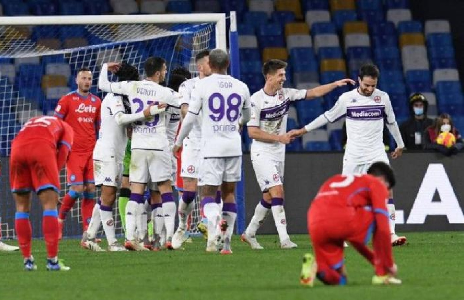ފިއޮރެންޓީނާ ރަށުން ބޭރުގައި ނަޕޯލީ ބަލިކުރީ ވެސް ފުރިހަމަ ވަގުތު ހަމަވިއިރު ދެ ޓީމު 2-2 އިން އެއްވަރުވުމުން ކުޅުވި އިތުރު ވަގުތުގެ ދެ ހާފުގައި ތިން ލަނޑު ޖަހައިގެންނެވެ. މެޗުގައި ފުރަތަމަ ލީޑު ނެގީ ވެސް ފިއޮރެންޓީނާ އިންނެވެ. ފުރަތަމަ ހާފުގެ 41 ވަނަ މިނިޓުގައި ޑޫސަން ވްލަހޮވިޗް ގެ ލަނޑުން ލީޑް ނަގާފައި ވަނިކޮށް 44 ވަނަ މިނިޓުގައި ނަޕޯލީގެ ޑްރީސް މާޓެންސް ވަނީ ނަޕޯލީއަށް އެއްވަރު ކޮށްދީފަ އެވެ.
