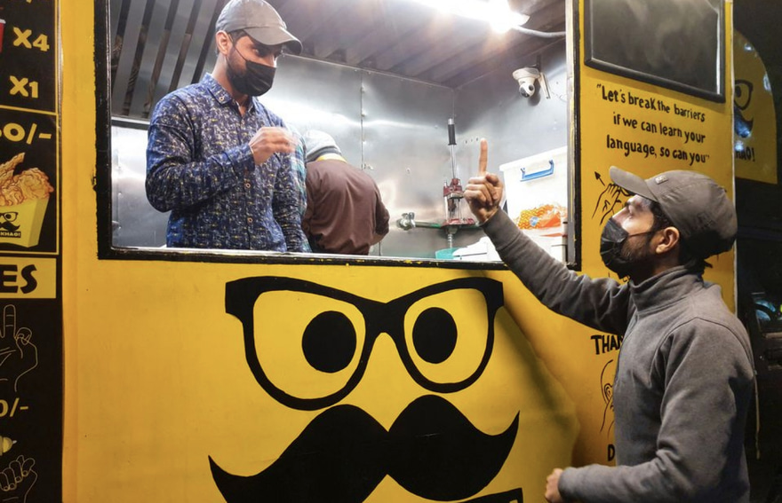 އެ ގާޑިޔަލުން ވިއްކާ ސޭންޑްވިޗާއި ފްރެންޗް ފްރައިޒް ގަންނަން ގޮސް، އިޝާރާތުން އޯޑަރު ދޭނެ ގޮތް، ރީނދޫ ކުލައިގެ އެ ގާޑިޔަލުގެ ބޭރުގައި ކުރަހާފައިވެ އެވެ.
