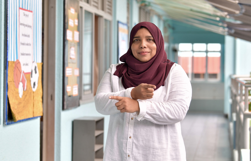 "އަޅުގަނޑު ކުރިން ހީކުރަނީ ނުކުޅެދުންތެރިކަން ހުންނަ ކުދިންނަކީ އަމިއްލަ އަށް ކަންކަން ނުކުރެވޭނެ ބައެއް ކަމަށް. އެކަމަކު އެއީ ބޮޑު ކުށްހީއެއް ކަން އެނގުނީ މި ކުދިންނާ ދިމާވުމުން،" އަޑުއިވުމުގެ ދަތިކަން ހުންނަ ކުދިންނަށް ޖަމާލުއްދީން ސްކޫލުގައި ކިޔަވައިދޭ ޓީޗަރު މަރިޔަމް ވިރާސާ ބުންޏެވެ.