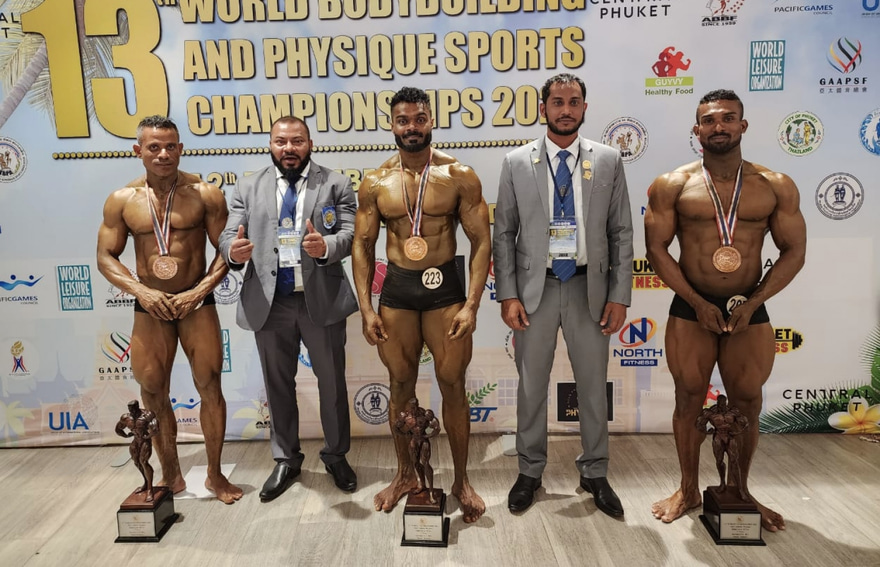 ތައިލެންޑްގައި މިހާރު ކުރިއަށްދާ ބޮޑީ ބިލްޑިން އަދި ފިޒީކް ސްޕޯޓްސް ޗެމްޕިއަންޝިޕްގައި ރާއްޖޭގެ ހުސައިން ހިމްޔާން އާއި އަބްދުﷲ އަހުސަން އަދި ފަތުހުﷲ މުހައްމަދު މިއަދު ބްރޯންޒް މެޑަލް ހޯދައިފި އެވެ.
