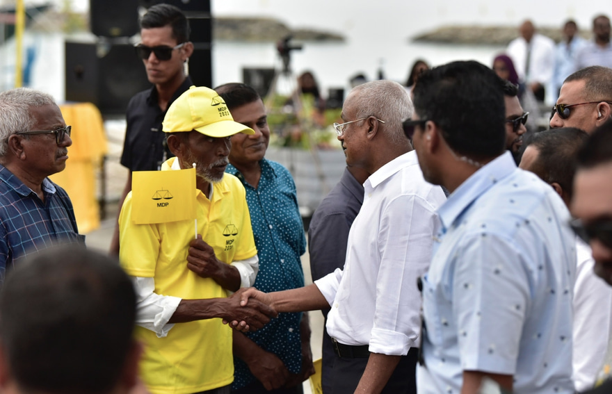 ރައީސް އިބްރާހިމް މުހައްމަދު ސޯލިހު، އެމްޑީޕީގެ ރިޔާސީ ޕްރައިމަރީގެ ކެމްޕެއިނަށް މިއަދު އައްޑު އަށް ވަޑައިގެން ފޭދޫގައި ބައެއް ސަޕޯޓަރުންނާއެކު.