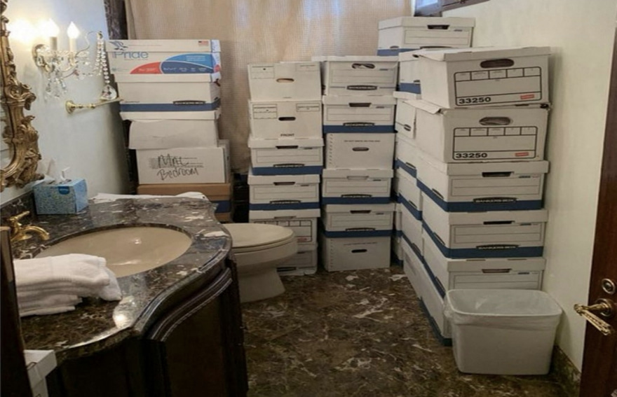 ޖަސްޓިސް ޑިޕާޓްމަންޓުން ބުނި ގޮތުގައި އެމެރިކާ ސަރުކާރުގެ ސިއްރު ލިޔުންތަކުގެ ތެރެއިން ބައެއް ލިޔުންތައް ރައީސް ޓްރަމްޕު ފޮރުވާފައި ހުރީ މާރް-އާ-ލާގޯ ރިސޯޓްގެ ފާޚާނާގަ އާއި ފެންވަރާ ބައިގަ އެވެ. އެ ލިޔުންތައް ހުރީ ފާޚާނާ އާއި ފެންވަރާ ބައިގެ ތެރޭގައި ފާރު ކައިރީގައި ބަރިއަކަށް އަތުރާފައި ހުރި ކަރުދާސް ފޮށިތަކެއްގަ އެވެ.