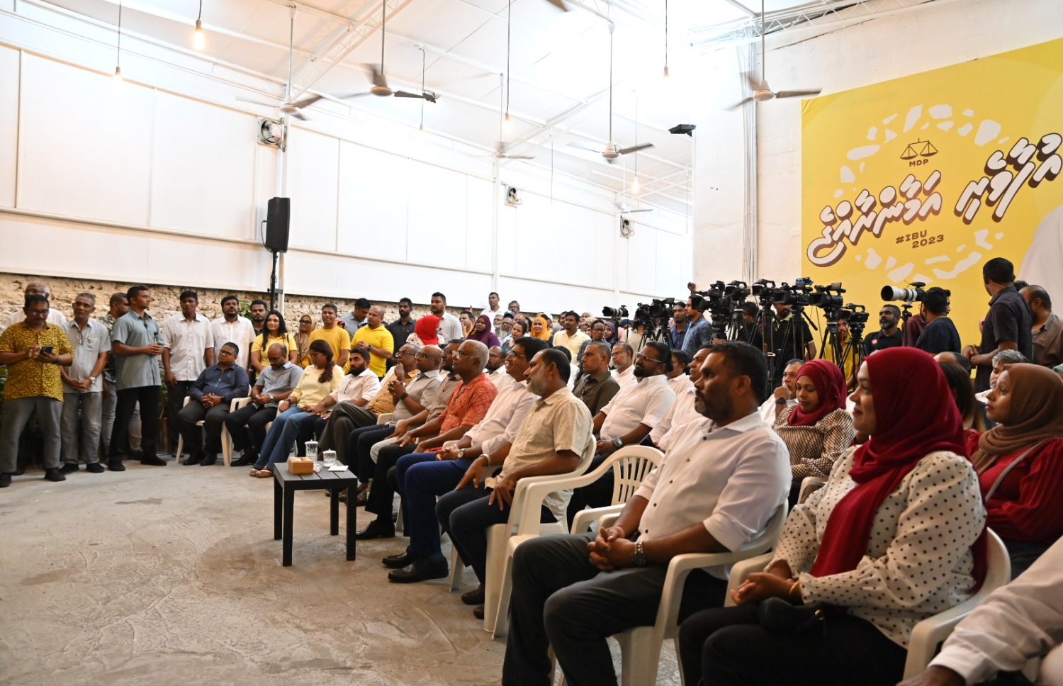 "އަޅުގަނޑުމެން މިތަނަށް އައުމާއެކީ ޔަގީން ކަން އަރުވަން އެމްޑީޕީގެ ލޯގޯގައި މި ފެންނަ ތިލަފަތުގެ ދެ ފަރާތް ހަމަހަމަ ކަން ގާއިމް ކުރެވުނީ. ދެން އޮތީ ކުޑަކުޑަ ހިތްވަރެއް ކޮށްލުން ނަތީޖާ ނެރެން. މޮޅުވާން.،" އަމީން ވިދާޅުވި އެވެ.