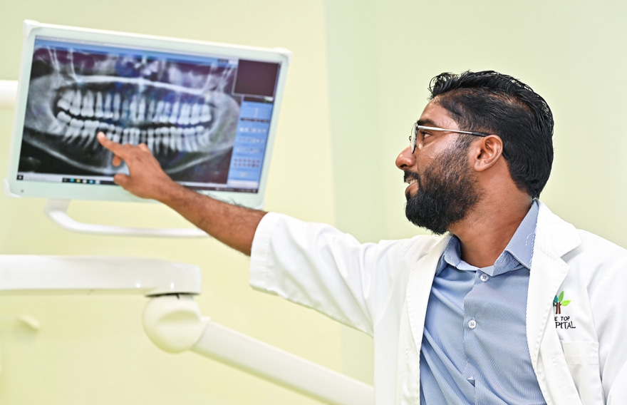 ދަތް ފަނިކެއުން ފަދަ އަނގައިގެ އެކި ބަލިތަކަށް ޓްރީ ޓޮޕް ހޮސްޕިޓަލުން ފަރުވާލިބެން ހުންނާނެ އެވެ. ދަތް ފަނިކެއުމުން, ފަނިކައިފައިވާ ދަތުގެ ބައި ނެގުމާއި, ފިލް ކުރުމާއި, ދަތްތައް ސާފުކުރުމާއި ދަތުގެ އެކްސްރޭ ނެގުން ފަދަ ހުރިހާ ހިދުމަތެއް ލިބޭނެ އެވެ.