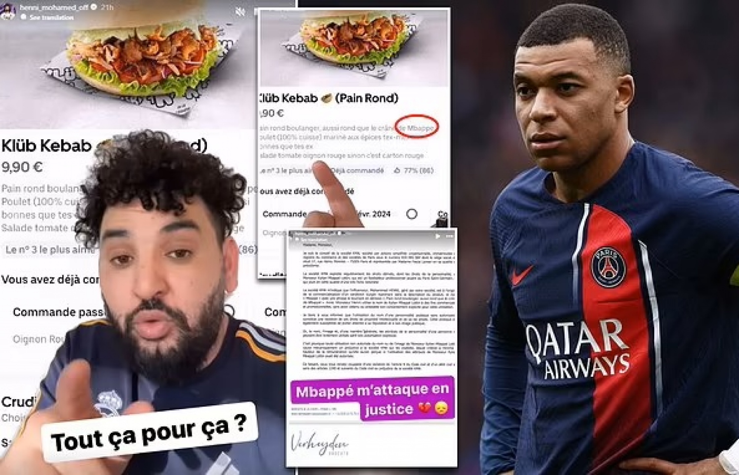 ޕެރިސް (މާޗް 14) - ކަބާބް ފިހާރައެއްގެ މެނޫގައި ހިމެނޭ ސޭންޑްވިޗެއްގެ ތަފްސީލުގައި ކިލިޔަން އެމްބާޕޭގެ ނަން ބޭނުން ކުރުމުން އެކަމާ ނުރުހުންވެ، ވިޔަފާރިވެރިޔާއާ ދެކޮޅަށް ދައުވާ ކުރަން އެމްބާޕޭ ނިންމައިފި އެވެ.