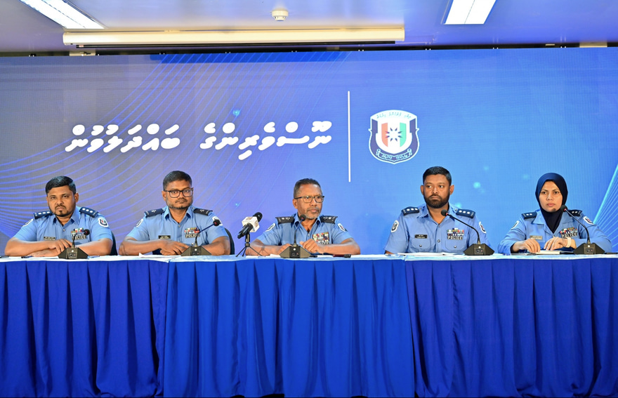 އިސްކަންދަރު ކޮށީގައި މިއަދު ފުލުހުން ބޭއްވި ނިއުސް ކޮންފަރެންސްގައި، ސައިބާ ޕޮލިސް އިންވެސްޓިގޭޝަން އޮފިސަރު، އިންސްޕެކްޓާ އޮފް ޕޮލިސް އާމިނަތު މުހައްމަދު ވާހަކަދައްކަވަނީ.-- ފޮޓޯ: ނިޝާން އަލީ/ މިހާރު