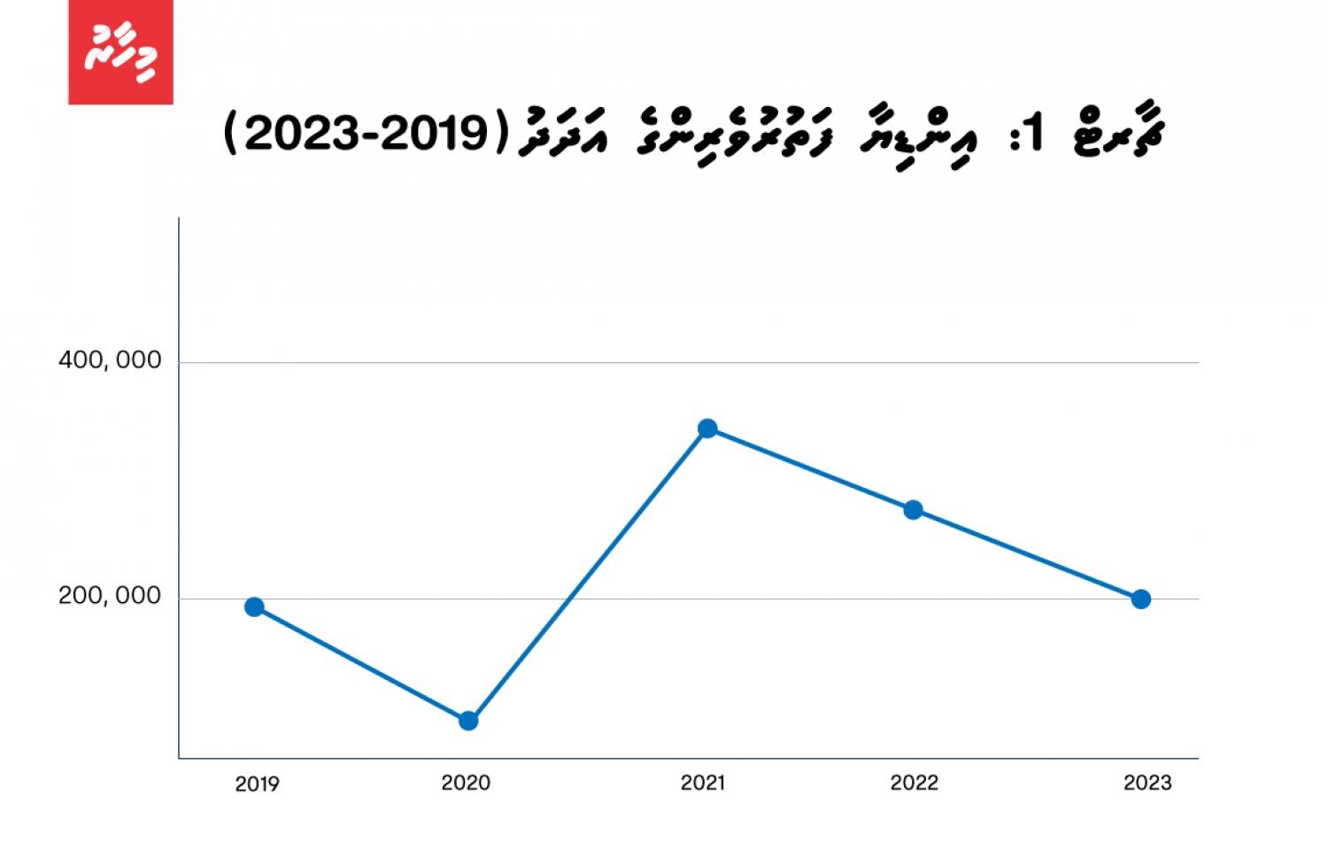 ޓޫރިޒަމް މިނިސްޓްރީއިން ލިބެން ހުރި އެންމެ ފަހުގެ ތަފާސްހިސާބަށް ބަލާއިރު، މާޗް 27 ގެ ނިޔަލަށް ރާއްޖެ އައީ 33،926 އިންޑިޔާ ޓޫރިސްޓުންނެވެ. ނިމިދިޔަ 2023 ގެ މި މުއްދަތުގައި 209،198 އިންޑިޔާ ޓޫރިސްޓުން ރާއްޖެ ޒިޔާރަތް ކުރި އެވެ. އެހެންކަމުން ރިޔާސީ އިންތިހާބަށް ފަހު މި ހިނގާ މުއްދަތުގައި އިންޑިޔާ ޓޫރިސްޓުން ރާއްޖެ އަށް ޒިޔާރަތް ކުރާ އަދަދު ބޮޑު ތަނުން، 83 ޕަސެންޓް މަދުވެއްޖެއެވެ.