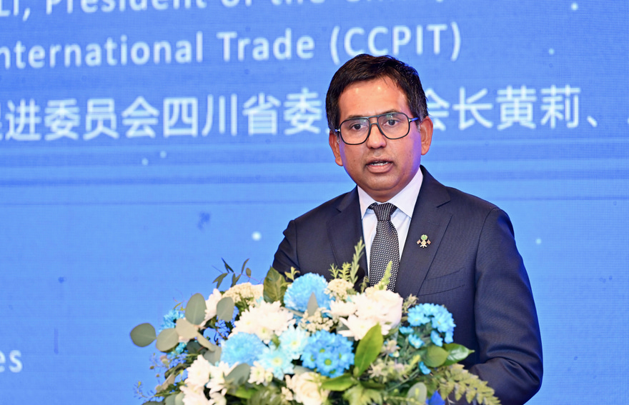 ރާއްޖޭގައި ހުރި ވިޔަފާރީގެ ފުރުސަތުތަކާ ގުޅޭ ގޮތުން މައުލޫމާތު ދޭން މިއަދު ކުރިއަށްދާ "މޯލްޑިވްސް-ސެޗުއަން ޓްރޭޑް އެންޑް އިންވެސްޓްމެންޓް ކޯޕަރޭޝަން ކޮންފަރެންސް" ފައްޓަވައި ދެއްވަމުން މިނިސްޓަރު ވިދާޅުވީ، ޗައިނާގެ ބޭންކެއް ހުޅުވުމަށްޓަކައި ވަރަށް މުހިއްމު މަސައްކަތްތަކެއް ފަށާފައިވާ ކަމަށެވެ.