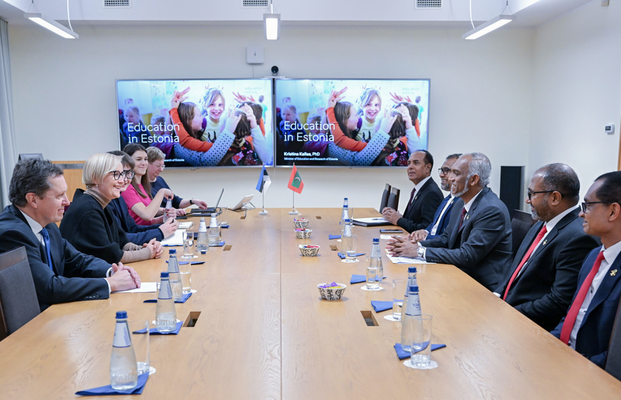 ދިވެހިންނަށް އެސްޓޯނިއާގައި ކިޔެވުމުގެ ފުރުސަތު ދިނުމާ ގުޅޭގޮތުން އެ ގައުމުގެ އެޑިއުކޭޝަން އެންޑް ރިސާޗު މިނިސްޓަރު ކްރިސްޓީނާ ކެލަސް އާއި ރައީސް ޑރ. މުހައްމަދު މުއިއްޒު އިއްޔެ މަޝްވަރާ ކުރައްވައިފި އެވެ.