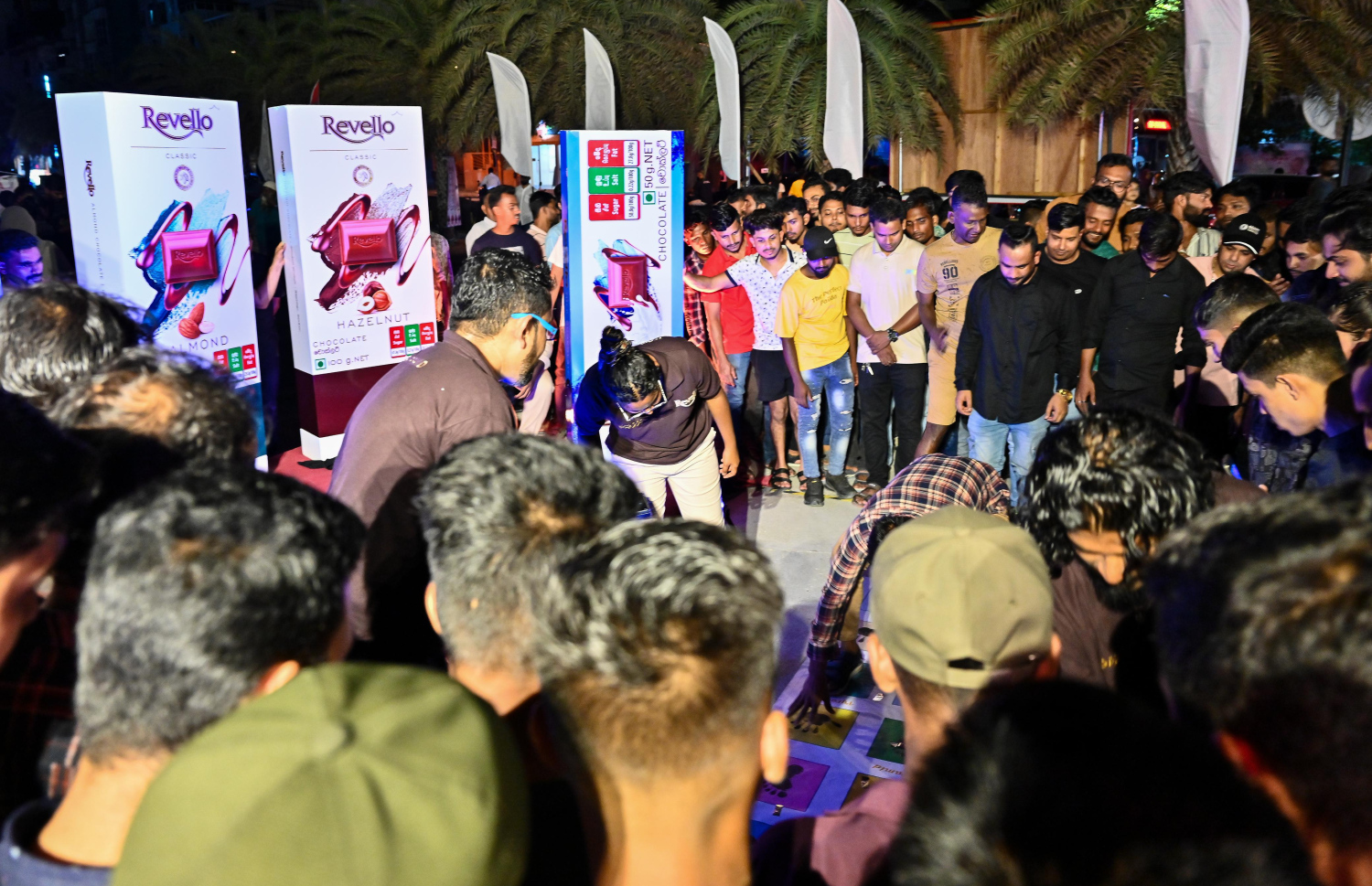 ހުޅުމާލެ ފޭސް އެކެއްގެ ކޮމާޝަލް ބްލޮކް އޭ (އޮލިވް ޓްރީ ފިހާރަ ހުންނަ ސަރަހައްދު) ގައި ކުރިއަށް ގެންދާ އެ ހަރަކާތުގައި ޕިރަމިޑުން މިހާރު ވިއްކާ ރެވެލޯ ބްރޭންޑުގެ ހަ ފްލޭވާގެ ޗޮކްލެޓުގެ ރަހަތައް ހިލޭ ބަލާލެވޭނެ އެވެ. އަދި އެ ހަރަކާތުގައި "ޓުވިސްޓް އެންޑް ވިން" އާއި "ބެލޫން ޕޮޕް" ފަދަ މަޖާ ގޭމުތަކުގައި ބައިވެރިވެގެން ރެވެލޯގެ 50 ގްރާމުގެ ނުވަތަ 100 ގްރާމުގެ ޗޮކްލެޓެއް ކާމިޔާބު ކުރުމުގެ ފުރުސަތު ވެސް ލިބޭނެ އެވެ.