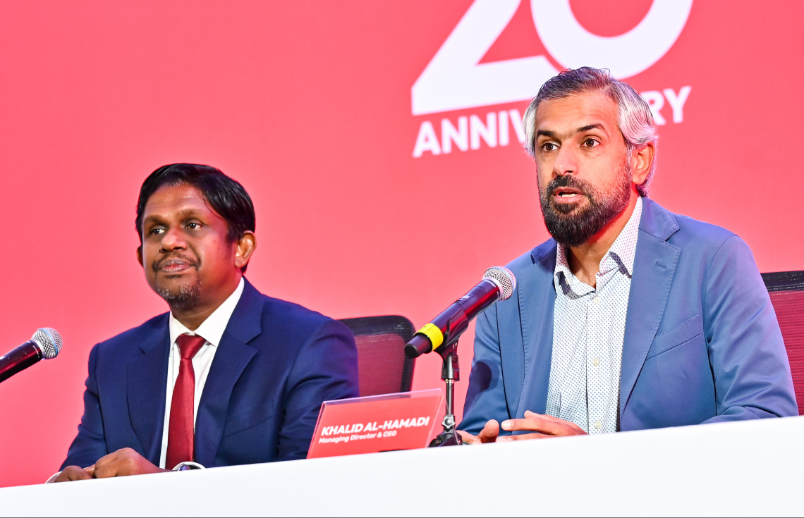 އުރީދޫ މޯލްޑިވްސްގެ ސީއީއޯ ހާލިދު އަލް ހަމާދީ ވާހަކަ ދައްކަވަނީ. -- ފޮޓޯ: ފަޔާޒް މޫސާ | އުރީދޫ