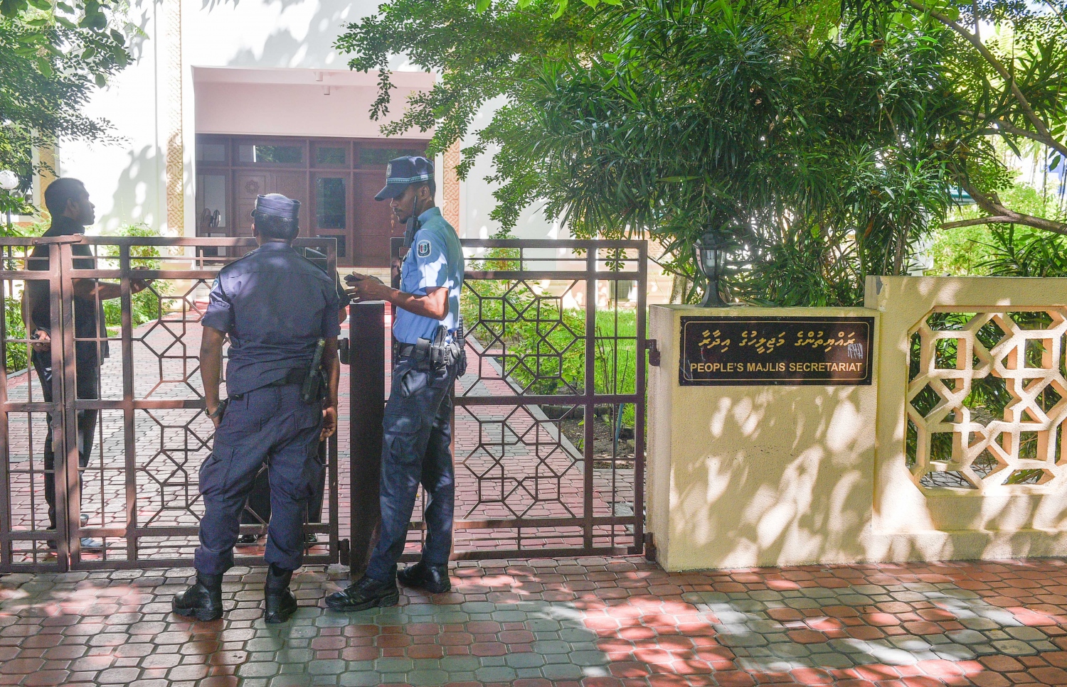 މަޖިލީހުގެ ޖަލްސާއެއް މިއަދު ބާއްވާނެ ކަމަށް އިދިކޮޅު މެމްބަރުން ވިދާޅުވެފައި ވަނިކޮށް، މަޖިލީހުގެ އިދާރާގެ ހުރިހާ ގޭޓުތައް ތަޅުލައި، ސިފައިން ދަނީ ދެ ފަރާތު ގޭޓް ކައިރީގައި ފޯރިމަރަމުންނެވެ. އަދި މަޖިލީހުގެ އިދާރީ މުވައްޒަފުން ފިޔަވައި އިތުރު ބަޔަކު އެ ތަނަށް ވަނުން ވަނީ މަނާކޮށްފަ އެވެ.