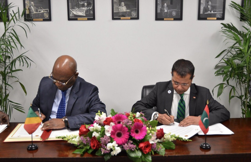 ފޮރިން މިނިސްޓްރީން ބުނީ ނިއު ޔޯކްގައި ހުންނަ ރާއްޖޭގެ ދާއިމީ މިޝަންގައި ބޭއްވި ރަސްމިއްޔާތުގައި، ސިޔާސީ ގުޅުން ގާއިމް ކުރުމުގެ އެއްބަސްވުމުގައި ސޮއިކުރެއްވީ ރާއްޖެ އިން އދ. އަށް ކަނޑައަޅާފައި ހުންނަވާ ދާއިމީ މަންދޫބު ޑރ. އަލީ ނަސީރު މުހައްމަދު ކަމަށެވެ.