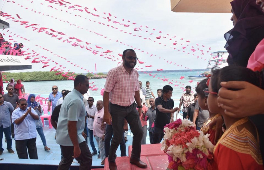 ރައީސް ޔާމީންގެ ރަނިންމޭޓަކަށް ޝަހީމް ހަމަޖެއްސެވި ފަހުން ކުރައްވާ ފުރަތަމަ ކެމްޕެއިން ދަތުރު ގައި ޝަހީމް އަމިއްލަ ރަށަށް ވަޑައިގަތުމުން ބަނދަރުމަތިން އެންމެ ފުރަތަމަ މަރުހަބާކީ އުމުރުން 100 އަހަރަށް ވުރެ ގިނަ މައްޗަށް ގޮސްފައިވާ އޭނާގެ ކާފަ އެވެ. އަދި އާއިލާ މެމްބަރުން ތިއްބެވި އެވެ. ގާތްގަނޑަކަށް 1500، މީހުންގެ އާބާދީއެއް އޮންނަ މާމެންދޫގެ ކުދި ބޮޑު، ދެ ޖިންސުގެ ގިނަ އަދަދެއްގެ ބަޔަކު ޝަހީމަށް ހޫނު މަރުހަބާއެއް ކިޔުމަށް ބަނދަރު ސަރަހައްދަށް އެއްވެ ތިއްބެވެ. ރަށަށް އީދެއް އައިސްފައިވާ ކަމަށް ފޮޓޯތަކުން ފެންނައިރު، ޝަހީމަށް މަރުހަބާ ކިޔުމަށް ދިގު ސަފެއް ހަދާފައި އޮތެވެ.