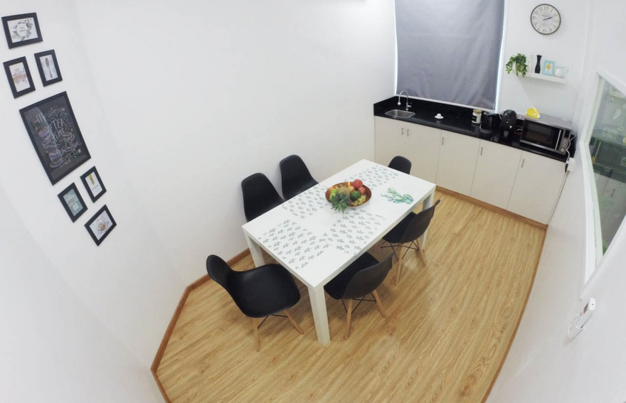 ރީތިކޮށް އެތެރެ ހަދައި ސިންކަކާއި މޭޒާއި ގޮނޑި ބަހައްޓާފައިވާ ސައި ކޮޓަރީގައި އައިސްއަލަމާރި އާއި މައިކްރޯވޭވް އާއި ކޮފީ މެޝިނާއި މިކްސަރާއި ދެ ވައްތަރު ޓޯސްޓަރު ހުރެ އެވެ. އެ ހުރިހާ ކަމެއް ފުރިހަމަކޮށްދިނީ އެކި ބެލެނިވެރިން އެކި ކަންކަމާ ހަވާލުވެގެންނެވެ.