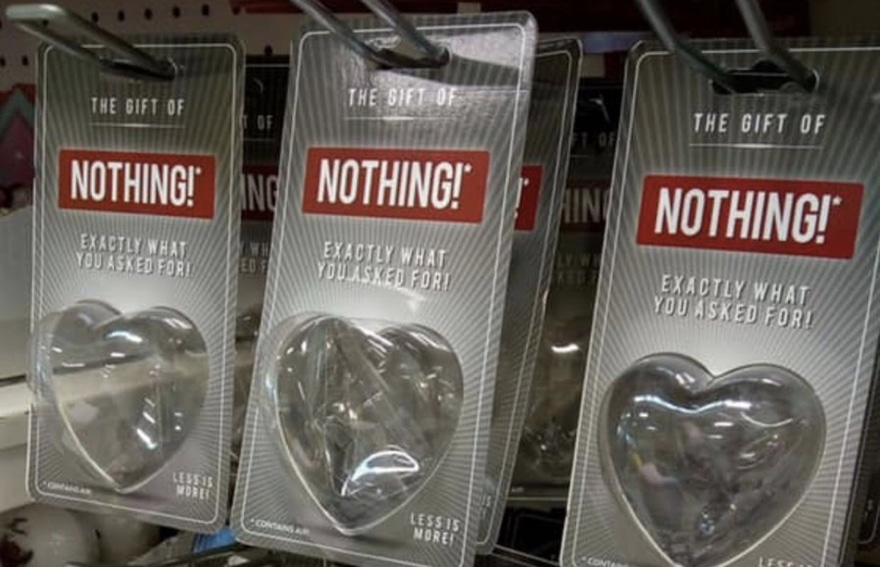 އެއް ޕައުންޑަށް ވިއްކާ "ކުނިގަނޑު" ގެ ނަމުން ވެސް އެކަން ދޭހަވެ އެވެ. އެއަށް ދީފައިވާ ނަމަކީ "ދަ ގިފްޓް އޮތް ނަތިން! އެކްޒެކްޓްލީ ވަޓް ޔޯ އާސްކް ފޮ" އެވެ. އަދި އޭގެ ޓެގް ލައިނެއްގެ ގޮތުގައި "ލެސް އިޒް މޯ" ޖަހާފައިވެ އެވެ.