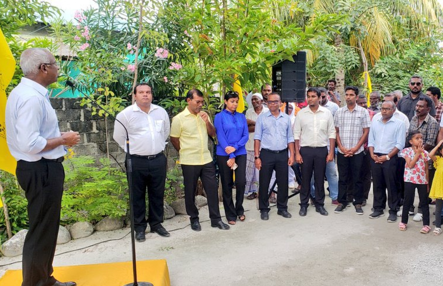 "ވީ ވައުދުތައް އޮތީ އޮތް ތާނގައި. އެހެން ނަމަވެސް މަންޒަރު ފެންނަނީ އެހެން ގޮތަކަށް. އެއީއެއް ނޫން ތިޔަ ބޭފުޅުން ރިޔާސީ އިންތިހާބުގައި އަޅުގަނޑުމެންނަށް ވޯޓް ދެއްވި ސަބަބަކީ. އެކުގައި މަސައްކަތްކޮށް، އަޅުގަނޑުމެން ވީ ވައުދުތައް ފުއްދުމަށްޓަކައި ތިޔަ ބޭފުޅުން ދެއްވި ވޯޓެއް އެއީ،" ރައީސް ވިދާޅުވި އެވެ.