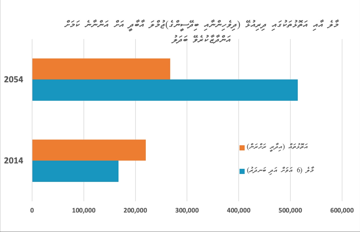 ދިވެހިންނާއި ބިދޭސީން ހިމެނޭ ގޮތަށް ރާއްޖޭގެ ޖުމްލަ އާބާދީ އަށް ބަލާ އިރު 2054އާ ހަމައަށް ދާ އިރު މާލޭގެ އާބާދީ 2014ގައި ހުރި ވަރަށް ވުރެ 207 ޕަސެންޓް ބޮޑުވާނެ އެވެ.