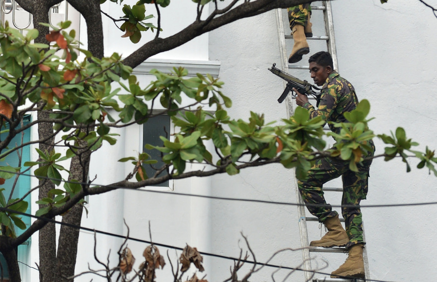 ސަރުކާރުން ކަށަވަރުކޮށްދިން ގޮތުގައި ސެއިންޓް އެންތަނީސް ޗާޗާއި ކަޓުވަޕިޓިޔާ ޗާޗާއި ޝަންގްރިއްލާ އާއި ސިނަމަން ގްރޭންޑް ހޮޓަލުގައި ހަމަލާ ދީފައި ވަނީ އަމިއްލަ އަށް މަރުވެގެން ބޮން ގޮއްވާލައިގެންނެވެ.