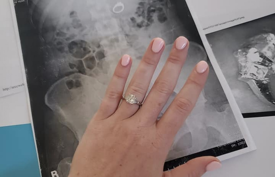 އެ ހުވަނުފެ ހާސްކަމުގައި ޖެނާ އަށް ހޭލެވުނު އިރު އިނގިލީގައި އަނގޮޓި ނެތުމުން ވަރަށް ހާސްވި އެވެ. އެކަމަކު ބަނޑަށް އަރާފައި ހުރި ތަދެއްގެ ސަބަބުން ފަހުން އެނގުނީ ނިދީގެ ތެރޭގައި އޭނާ އަށް އަނގޮޓި ދިރުވައިލެވުނު ކަމެވެ. އެހެންވެ ޖެހުނީ ކަމާކަންފަށާފައި އެންޑޯސްކޯޕީއެއް ހަދައިގެން 2.4 ކެރަޓް ޖަވާހިރުގެ އަނގޮޓި އޭނާގެ ބަނޑުން ނަގާށެވެ.